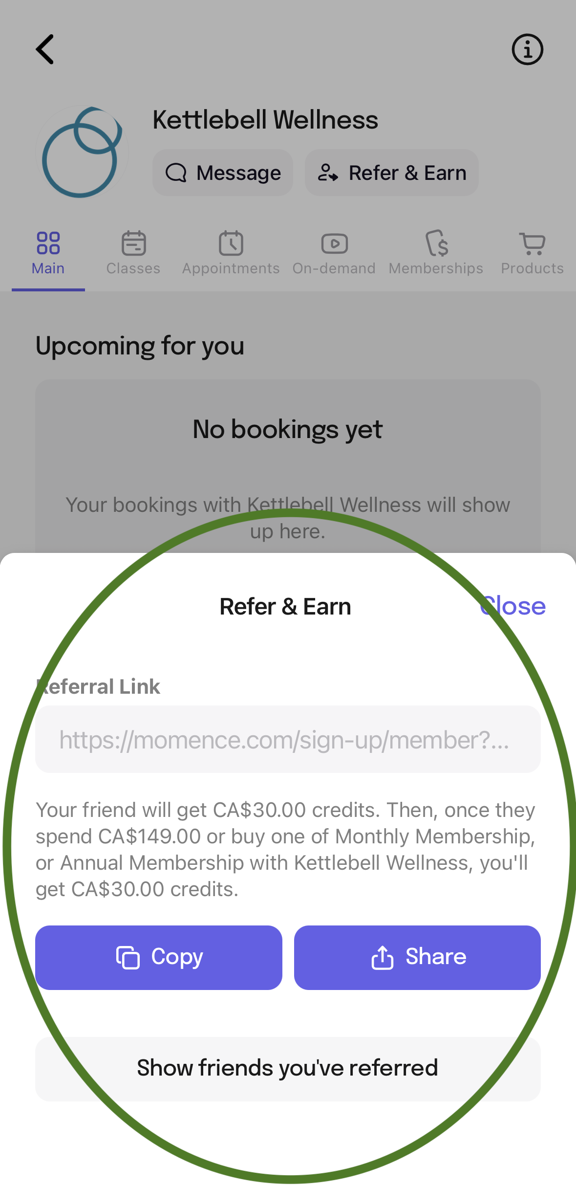 Once your friend signs up and becomes a paying member, Momence will apply: