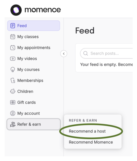 Hover over “Refer & earn” in the left-hand menu and click “Recommend a host”